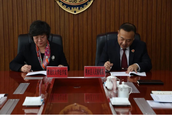 欢迎来公海欢迎来到船701经理哈书菊与明水检察公司党组书记、检察长王焱共同签署《检校共建协议书》。