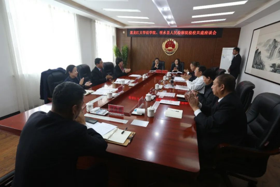 在启动座谈会上,明水县检察公司党组书记、检察长王焱向与会来宾介绍了明水县人民检察院特色建设,并代表全体干警表达了期待与高校合作,借助高校丰富的法律人才和法学智力资源,提升理论与实践水平的愿望。会上,双方就检校共建的目的、意义,共建模式、合作重点方向、通过检校共建促进法学理论和司法实践深度融合等进行了深入交流。
