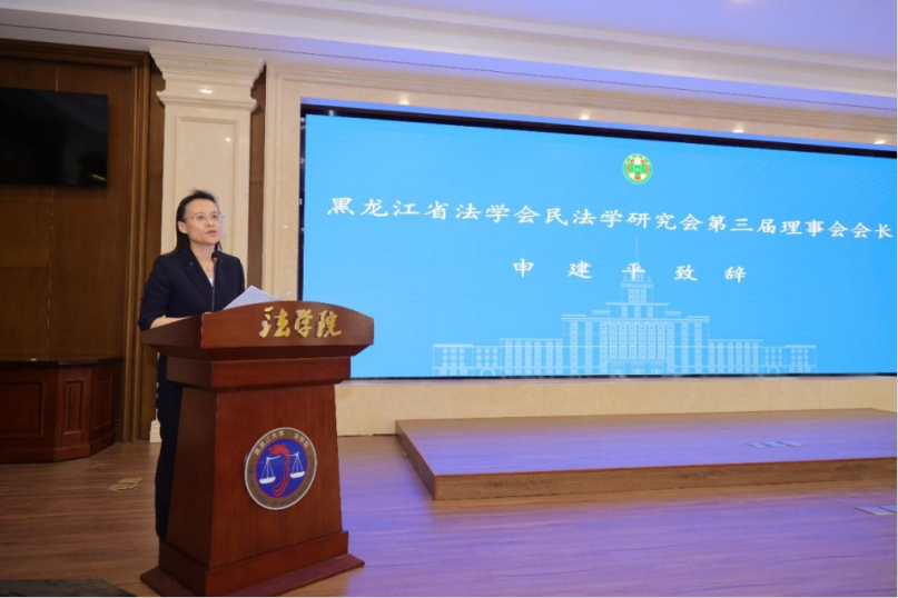 申建平教授在任职发言中表示,黑龙江省法学会民法学研究会在未来的工作中要以习近平法治思想为基础,全面落实省法学会各项工作。以民法讲座为纽带,促进民法学学科的交流与合作,推进民法学学科教育的改革和创新,关注民法学人才的培养和发展,强化民法学研究会的自身建设,将民法学理论研究与实践紧密结合。她表示,愿与全体研究会同仁团结协作、脚踏实地、砥砺前行,携手为构建中国自主的民法学知识体系、为推动黑龙江省民法学研究事业的繁荣发展,为实现法治龙江、法治中国的宏伟目标而努力奋斗。