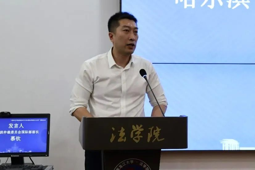哈尔滨仲裁委国际部部长慕钦以《新时代中俄商事仲裁的发展与合作》为题,其首先对中俄仲裁制度的发展历史着手,介绍了中俄仲裁发展的重要节点,其次指出来近年来中俄仲裁的改革和发展方向,着重分析了2016年俄罗斯仲裁改革和我国仲裁改革的情况,最后强调了指出中俄仲裁合作的机遇首先是市场主体解决纠纷的需求,另外一方面是国家战略的需要。从更高层次的角度,我们两个国家尤其是我们中国,可能在这个国际规则的制定上,我们需要更多的话语权。