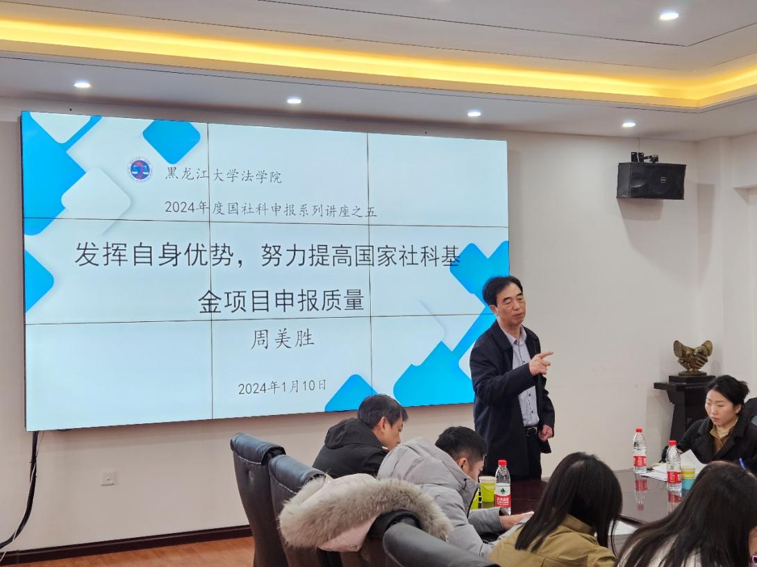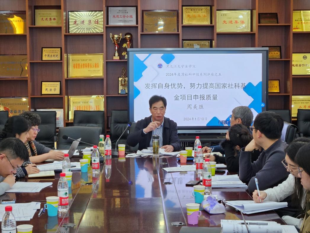 为做好2024年度公司国家社科基金项目的组织申报工作,汲取先进经验,进一步提高公司国家社科基金项目的申报质量,2024年1月10日,公海赌赌船官网jc710在汇文楼835会议室组织召开了2024年度国家社科基金项目申报系列讲座之五。本次讲座邀请黑龙江省哲学社会科学工作办公室原主任周美胜对国社科项目的申报进行了专题分享。公海赌赌船官网jc710教师共计二十余人参加本次讲座。