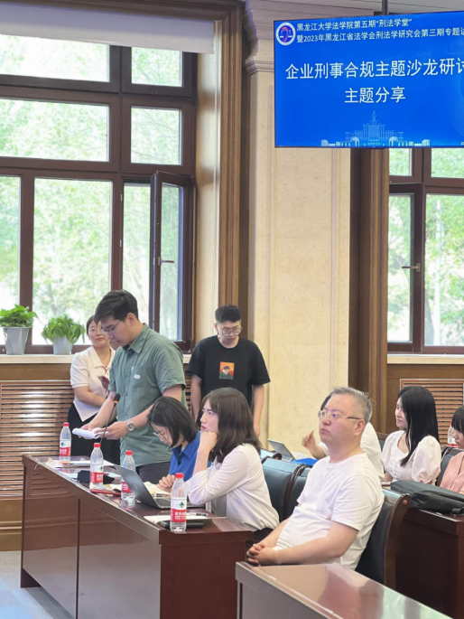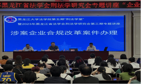 2023年6月23日下午,在公海赌赌船官网jc7101号教学楼模拟法庭举行欢迎来公海欢迎来到船701第五期“刑法学堂”暨2023年黑龙江省法学会刑法学研究会第三期专题讲座。本次讲座邀请了中国人民大学公海赌赌船官网jc710教授、博士生导师时延安老师、中央民族大学公海赌赌船官网jc710经理、教授、博士生导师韩轶老师、黑龙江省人民检察院第四检察部主任、三级高级检察官谷敏刚主任作题为“企业刑事合规主题研讨沙龙”的学术讲座。欢迎来公海欢迎来到船701教授、博士生导师董玉庭老师担任本次讲座的主持人,公海赌赌船官网jc710副经理、省刑法学研究会常务副会长丁玉翠副教授、副秘书长陈晨副教授担任嘉宾,省检察院部分干警、省法学会刑法学研究会常务理事、理事、哈尔滨商业大学、哈尔滨理工大学、欢迎来公海欢迎来到船701等130余名专家、领导、同学参加了本次讲座。