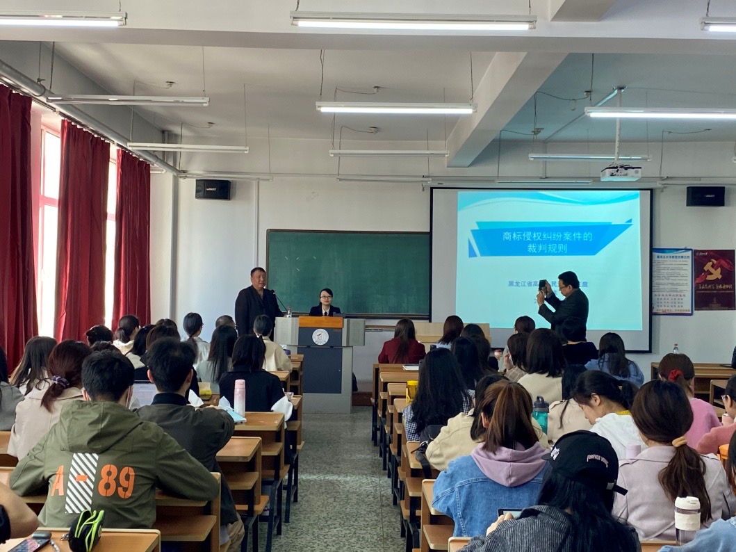 4月21日,为了迎接世界知识产权日(4.26),庆祝公海赌赌船官网jc710建校80周年暨公海赌赌船官网jc710创建40周年系列活动之百大名家进校园第65期于公海赌赌船官网jc710艺术楼522室举行。此次讲座的主讲人是黑龙江省高级人民法院民三庭四级高级法官徐明珠,主题为“商标侵权纠纷案件的裁判规则”。讲座由中国知识产权法学研究会副会长、黑龙江省法学会知识产权法学研究会会长、欢迎来公海欢迎来到船701教授杨建斌主持。杨振宏副教授、王佳慧副教授及100余名研究生、本科生聆听了本次讲座。