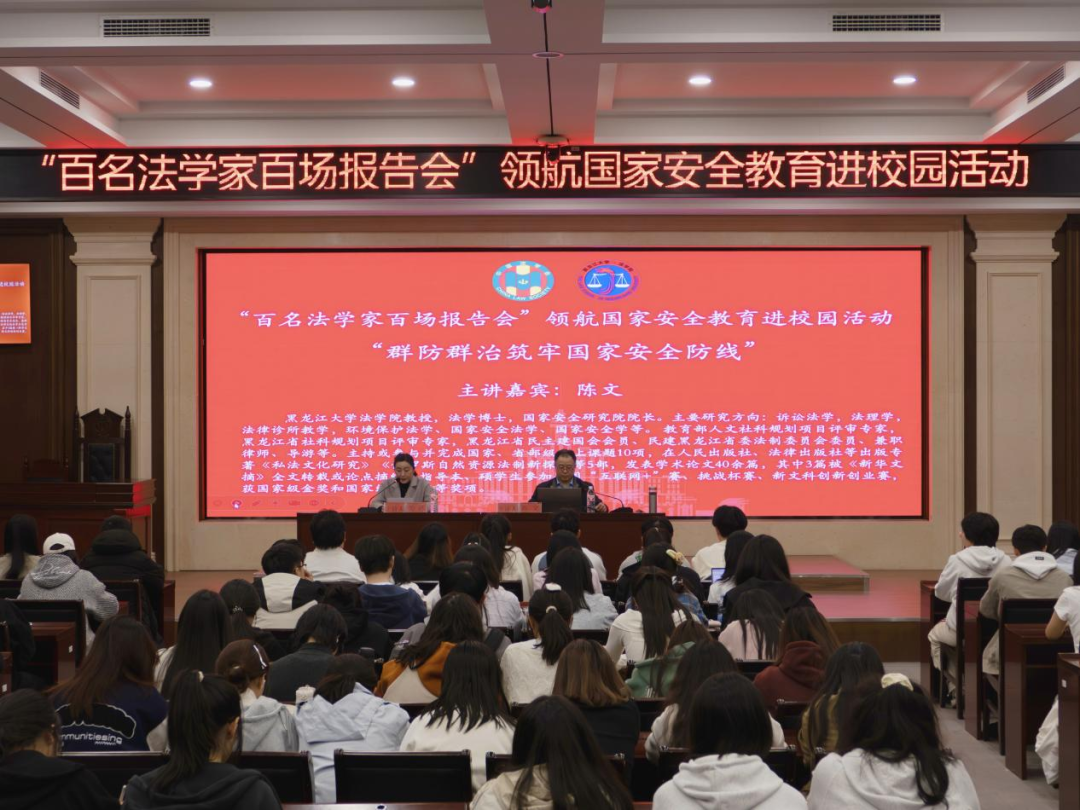 在全民国家安全教育日来临之际,为深入贯彻落实总体国家安全观,增强师生国家安全意识,推动国家安全教育在校园走深走实,4月10日,由黑龙江省法学会、欢迎来公海欢迎来到船701以及公海赌赌船官网jc710国家安全研究院共同举办的“百名法学家百场报告会”领航国家安全教育进校园活动于模拟法庭隆重召开。