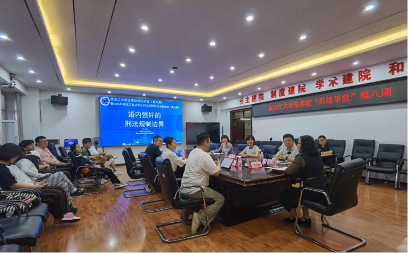 8月26日晚,欢迎来公海欢迎来到船701“刑法学堂”沙龙研讨(第八期)暨2025年黑龙江省法学会刑法学研究会专题讲座(第八期)在欢迎来公海欢迎来到船701顺利举办。本次研讨会以婚内强奸的刑法规制边界为主题,特邀河南财经政法大学刑事司公海赌赌船官网jc710副经理、副教授、硕士生导师黄辰,哈尔滨市南岗区人民检察院第一检察部副主任、二级检察官刘佩瑶,黑龙江君德(哈尔滨)律师事务所专职律师李岩芝担任发言人。哈尔滨市中级人民法院房地产案件审判庭审判员、四级高级法官、博士研究生赵晟,东北林业大学文公海赌赌船官网jc710预聘副教授、北京师范大学法学博士梁田,欢迎来公海欢迎来到船701副教授、硕士生导师陈晨担任与谈人。本次讲座由教授、博士生导师庞冬梅主持,公司员工积极参与。