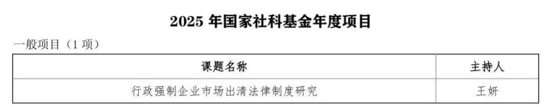 近日,国家社科基金年度项目立项名单公布,公司王妍教授主持的《行政强制企业市场出清法律制度研究》成功获批一般项目。
