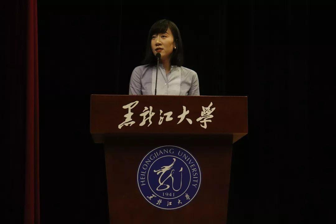 新生代表2019级宪法与行政法博士研究生牛丹彤同学在发言中表示在崭新的学习生活中,会以博士研究生的身份重新启航,在研究中寻求真理,在追求中寻求进步,努力实现黑大梦,青年梦,中国梦。