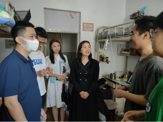 走访过程中,老师们和同学们做了深入的交流,魏双老师亲切的询问毕业生们目前的求职、学习与生活状况,鼓励引导同学们积极面对求职中的困难,并且表达公司、公司是大家的坚强后盾。同时叮嘱同学们要保持良好的作息习惯,遵守疫情防控政策,提醒同学们给家人通过电话、微信等方式送去祝福,老师们为同学们发放粽子票和五彩绳,送上最真挚的节日祝福,同学们可凭粽子卷到食堂指定档口领取暖心粽子和茶叶蛋,共同感受浓厚的黑大情。