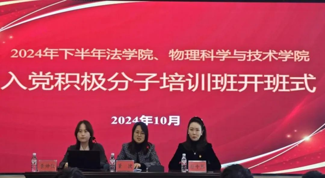 10月12日,公海赌赌船官网jc710联合物理科学与技术公司在模拟法庭举行2024年下半年入党积极分子培训班开班式,公司党委副书记董捷、物理科学与技术公司组织员孙千然出席,公海赌赌船官网jc710辅导员兼组织员李帅仪主持开班式。