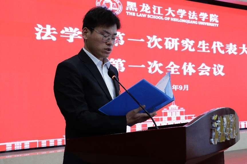 公令聪宣读《关于<欢迎来公海欢迎来到船701研究生会章程>起草情况的说明》