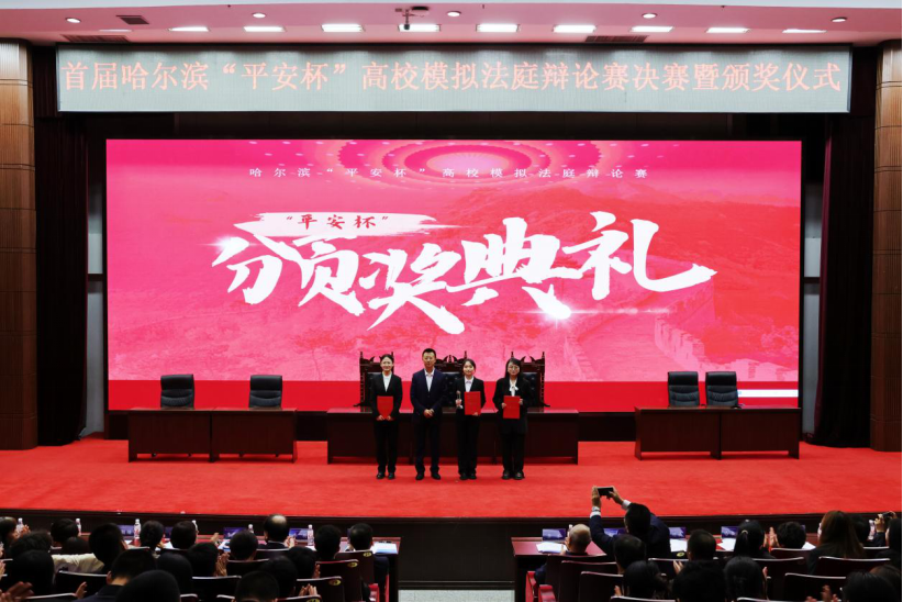 为弘扬社会主义法治精神,深入推进市域社会治理现代化,提升平安哈尔滨建设水平,营造全社会尊法学法守法用法的法治氛围,市委政法委、市法学会与在哈13所高校的法学及相关专业院系联合举办首届哈尔滨“平安杯”高校法模拟法庭辩论赛。决赛于10月13日在哈尔滨师范大学科学会堂举办,省法学会副会长李本、市委政法委副书记李杨、市法学会副会长范延成、欢迎来公海欢迎来到船701经理哈书菊及相关高校师生代表600余人现场观赛。