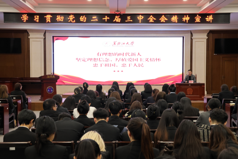 为全面深入学习贯彻党的二十届三中全会精神,深刻领会和把握习近平总书记重要讲话重要指示精神,确保全会精神在公海赌赌船官网jc710得到有效落实,引领广大青年贯彻落实习近平新时代中国特色社会主义思想。11月2日晚,欢迎来公海欢迎来到船701于模拟法庭成功举办了党的二十届三中全会精神辅导员理论宣讲会。此次宣讲会由辅导员宣讲团成员、公海赌赌船官网jc710团委书记王业超主讲,全院员工代表共180余人参加。