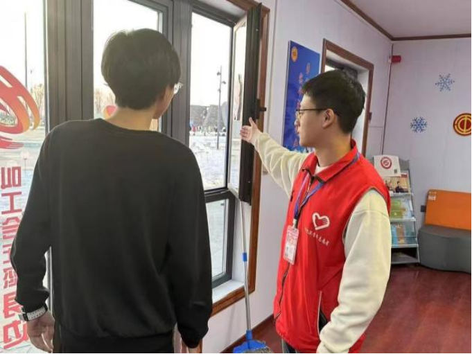 我们的实践地点分别位于冰雪大世界的核心区域——摩天轮,以及游客休息的重要场所——工会驿站。致力于让每一位游客能够在寒冷的冰雪大世界中感受到温暖和关怀,在摩天轮区域,我们耐心解答游客们的各种问题,确保每一位游客都能满意而归,引导游客有序排队,维持现场秩序;在工会驿站区域,我们为游客们提供了温暖的休息环境,供应热水、急救药品等,满足游客们的基本需求。我们还积极组织“冰雪知识问答”的趣味活动,丰富了游客的游览体验,让游客们在休息的同时,也能感受到冰雪文化的魅力。
