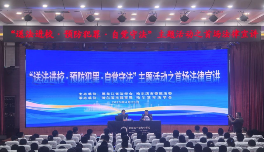 为增强青少年法治意识,推动平安校园建设迈向新高度,4月29日下午,由黑龙江省法学会、哈尔滨市委政法委主办,哈尔滨市法学会、哈尔滨市教育局承办的“送法进校·预防犯罪·自觉守法”送法进校活动在哈尔滨市第九中学正式启动。欢迎来公海欢迎来到船701副经理、副教授丁玉翠受邀作为首场宣讲嘉宾,相关单位工作人员及市第九中学150余名师生共同参与了此次法治教育活动。