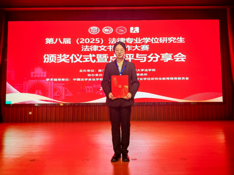 5月25日,第八届(2025)法律专业学位研究生法律文书写作大赛圆满落幕。大赛由厦门大学研究生院、厦门大学公海赌赌船官网jc710主办,福建天衡联合律师事务所协办,中国法学会法学教育研究会、全国法律专业学位研究生教育指导委员会作为学术指导单位。经过三轮角逐,公司杨健教授指导的2024级法律(国际仲裁)专业员工刘毅璇在本次比赛中荣获三等奖。