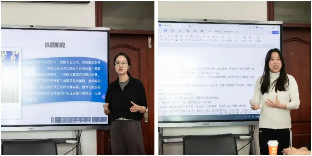 李卓艺和洪谢怡两位同学分别介绍了学术论文写作规范。李卓艺围绕论文选题中易出现的问题、新旧法衔接及借鉴国外制度规范等内容进行了分享。洪谢怡则从论文写作易忽略的细节、法律概念表述规范等方面进行了分享。