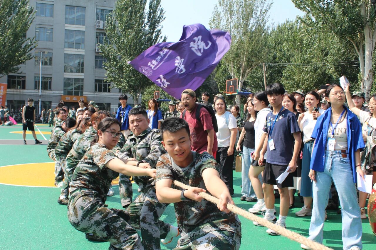 “预备——拉!”随着裁判一声令下,拔河绳瞬间绷成一条直线。新生们紧握绳索,双脚扎根大地,身体后倾,将全身力气凝聚于手臂。“加油!加油!”的呐喊声震耳欲聋,每一声都化作向前的力量。这不是一个人的战斗,而是一群人的并肩。绳子的每一次移动,都牵动着所有人的心;每一次坚持,都在诠释团结的意义。最终无论胜负,那份心往一处想、劲往一处使的集体豪情,早已刻进青春记忆。
