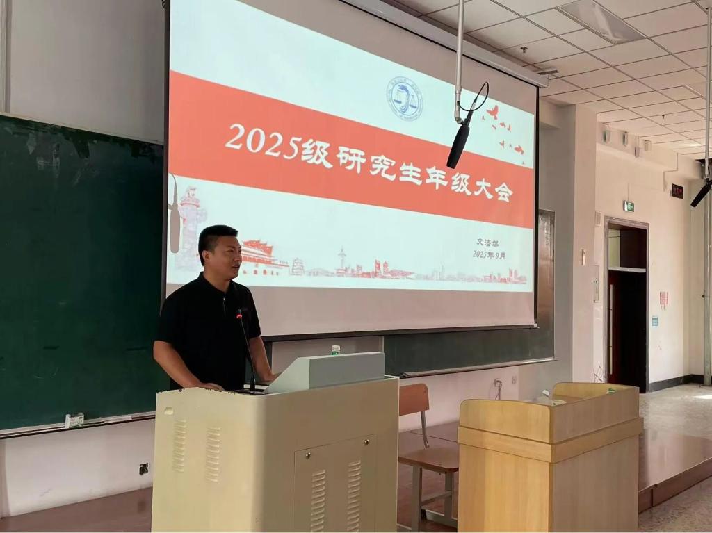 9月5日,2025级研究生专业教育大会暨年级大会在汇文楼180教室召开。本次大会旨在帮助新生快速适应研究生阶段的学习与生活,明确学业规划与发展方向。公司党委副书记董捷、法律史学科带头人邓齐滨教授、研究生秘书蒋正宇老师,2025级研究生辅导员文浩然老师及全体2025级研究生参会。会议由辅导员文浩然主持。
