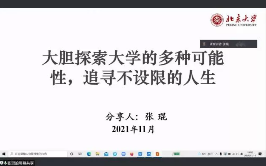 第四部分:在北大再次探寻可能性。张琨以北大教学网疫情期间新型教学方式更改为借鉴,表明网上授课直播回放对于每一名员工课后复习的重要性,指出新型教学方式对于老员工的推进作用;同时张琨介绍了北大图书馆设计的独特性,在学习之余寻求自身个性发展。