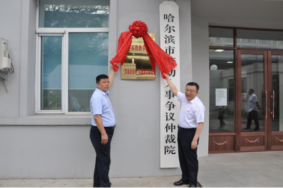 会后,哈尔滨市劳动人事争议仲裁院经理孟朝晖与公海赌赌船官网jc710副董事长严明共同为“公海赌赌船官网jc710法学教学实践基地”及“公海赌赌船官网jc710劳动法诊所实践教学基地”揭牌。