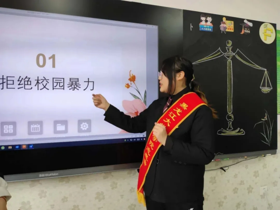 在讲解过程中,志愿者们通过法律知识宣讲、典型案例剖析、情景演绎等形式讲述了校园暴力、校园欺凌、禁毒等法律问题,将《预防未成年人犯罪法》《治安管理条例》等法律规定的内容进行了生动地讲解。
