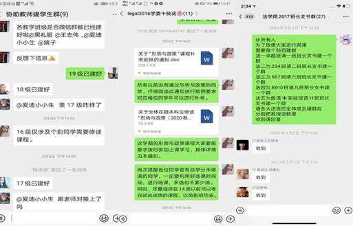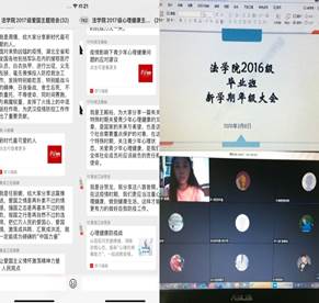 三是督导助学,平稳推进。课程结束以后,公司对教师授课情况及课程内容进行认真审查,做好线上授课质量、监督检查和跟踪评估。通过教学反馈来看,线上课堂出勤率高、学习氛围浓、教学质量好,师生之间教与学双向积极互动,直播中切磋问答,通过QQ群、微信群、腾讯会议、钉钉课堂群等不同平台进行广泛地交流,确保特殊时期防疫、教学两不误。同学们纷纷表示疫情当下,作为法学学子能做的就是要加倍努力学习,做到早日成才,报效祖国。