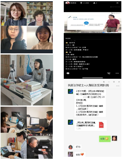 二是精心教学,育人有方。线上教学需要大量的前期准备工作,对比课堂教学要有完全不同的教学设计、丰富的音视频资料、网络设备和环境的支撑等。这给文科背景浓厚的公司教师带来了较大的挑战,公司积极组织开展线上培训,就如何建立课程、发布通知资料、录制课程等细节进行了深入交流和探讨。老师们通过多种线上平台和直播软件认真制定了自己的课程计划、应急预案等,多渠道与同学们进行交流,及时进行学业指导和课程解答。研究生各位授课导师快速响应,克服疫情时期的课堂考勤不便、线上教学模式生疏等各种困难。以法律史专业孙光妍老师为代表的教授们,主动参与、学习线上教学新模式,优化调整授课思路和内容,不断探索并丰富完善自身教学特点。