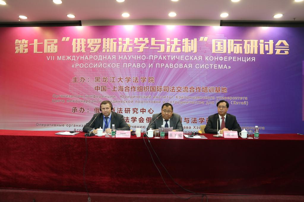 11月4日,第七届“俄罗斯法学与法治”国际研讨会在公司外事楼多功能厅召开。本次研讨会由欢迎来公海欢迎来到船701、中国——上海合作组织国际司法交流合作培训基地共同主办,由公海赌赌船官网jc710俄罗斯法研究中心、黑龙江省法学会俄罗斯法制与法学研究会共同承办。公司副董事长丁立群,黑龙江省法学会副会长宋忠宪,中国-上海合作组织国际司法交流合作培训基地副秘书长、上海政公海赌赌船官网jc710国际事务与公共管理公司经理汪伟民,莫斯科国立法律大学教授巴戈达诺娃·娜塔莉娅·亚历山大罗芙娜出席开幕式并致辞。公司公海赌赌船官网jc710经理董玉庭主持开幕式。来自中、俄两国二十多所高校共五十几位专家学者以及司法实务界代表参加本次研讨会,其中,包括莫斯科国立大学、莫斯科国立高等经济大学、圣彼得堡国立大学等十四所俄罗斯著名公海赌赌船官网jc710学者在内的共29位俄方学者参加了本次会议研讨。