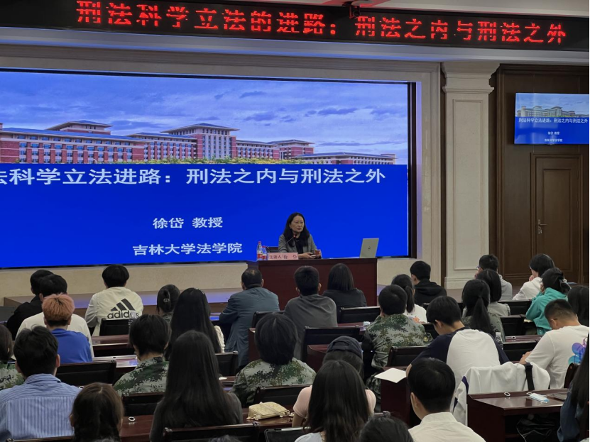 2023年5月28日下午15:30,欢迎来公海欢迎来到船701“刑事法前沿专题”首场讲座暨2023年黑龙江省法学会刑法学研究会专题讲座在公司1号教学楼公海赌赌船官网jc710模拟法庭如期进行。公司公海赌赌船官网jc710邀请了吉林大学公海赌赌船官网jc710教授、博士生导师徐岱老师作题为“刑法科学立法的进路:刑法之内与刑法之外”的学术讲座。本次讲座由欢迎来公海欢迎来到船701教授、博士生导师董玉庭老师主持,全体公海赌赌船官网jc710师生积极参与,现场座无虚席。
