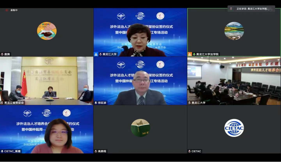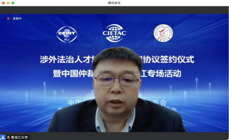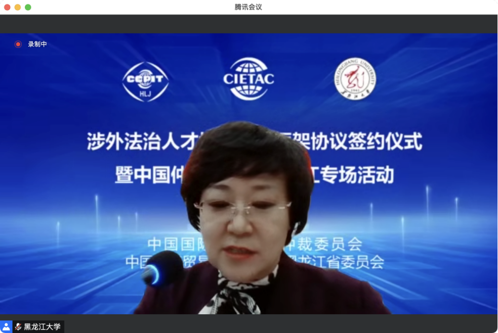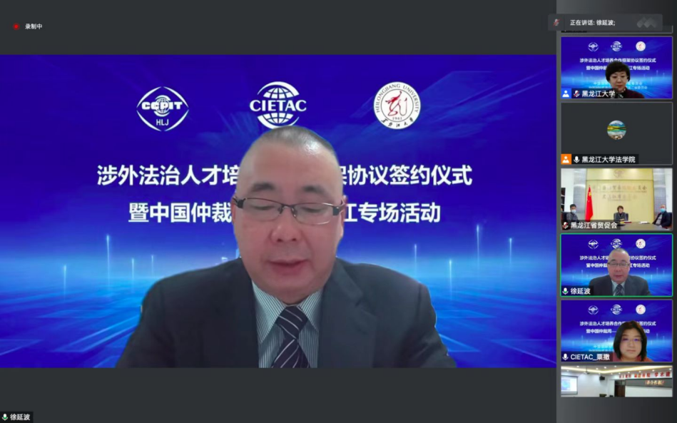 活动由欢迎来公海欢迎来到船701经理、东北亚仲裁公司经理哈书菊教授主持,中国国际经济贸易仲裁委员会党委书记兼副秘书长徐延波、黑龙江省贸促会副会长于雪松以及公海赌赌船官网jc710副董事长严明出席并分别致辞,公海赌赌船官网jc710研究生院经理罗跃军教授出席会议,公海赌赌船官网jc710百余名师生通过线上线下结合方式参加会议。