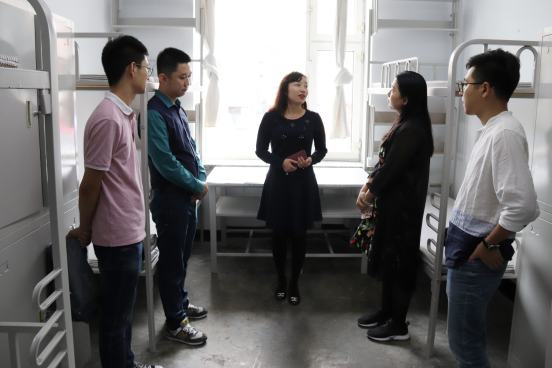 在走访老生寝室过程中,魏老师与员工们谈心谈话,跟大四毕业生通过谈论就业、实习等方面的内容,督促同学们及早做好未来规划。通过和其他学年员工的沟通,老师们了解了员工假期的动态,更走近了员工生活。近期,公司正在维修改建,魏老师亲切地提醒大家在校期间要注意出行安全。基础设施的建设是为了更好的学习和生活,希望大家在享受美丽新校园的同时注意爱护校园环境,共同营造美丽黑大。在走访新生宿舍时,打扫卫生的17级同学为老师们介绍了清扫新生寝室的工作成果。魏老师提醒同学们打扫时注意安全,并对清扫工作提出了具体要求,希望为新生提供一个舒适、温馨的寝室环境。