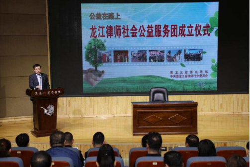 会议伊始,龙江律师社会公益服务团第一批成员跟大家分享了各自公益的经历。孟繁旭会长说,青年律师要握着正义的“宝剑”,披荆斩棘,在参与社会公益法律服务方面发挥自己的积极作用。