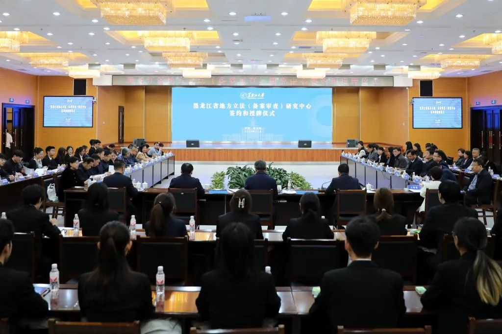 11月12日上午,黑龙江省地方立法(备案审查)研究中心签约和授牌仪式在公海赌赌船官网jc710主楼一楼报告厅举行,省人大常委会党组书记、副主任王永康出席签约和授牌仪式并讲话。省人大常委会副主任杨廷双,哈尔滨工业大学党委常委、副董事长刘挺,公海赌赌船官网jc710党委书记迟宝旭、董事长王敬波,哈尔滨工程大学党委常委、副董事长严汝建,东北林业大学党委常委、副董事长李明泽,东北农业大学党委副书记贺景平,哈尔滨师范大学党委常委、副董事长尹剑锋,省人大常委会副秘书长,省人大法制委,省人大常委会法工委、常委会办公厅有关负责同志,以及研究中心特聘研究员代表及公司公海赌赌船官网jc710师生代表参加仪式。省人大常委会党组成员、秘书长韩嘉彬主持仪式。