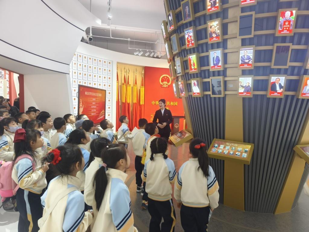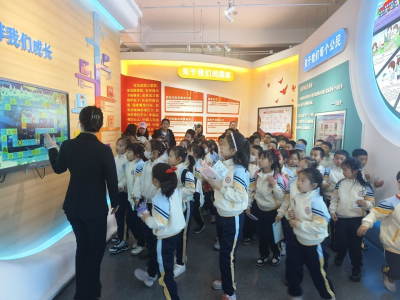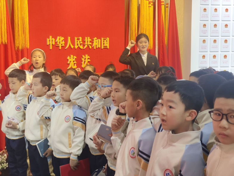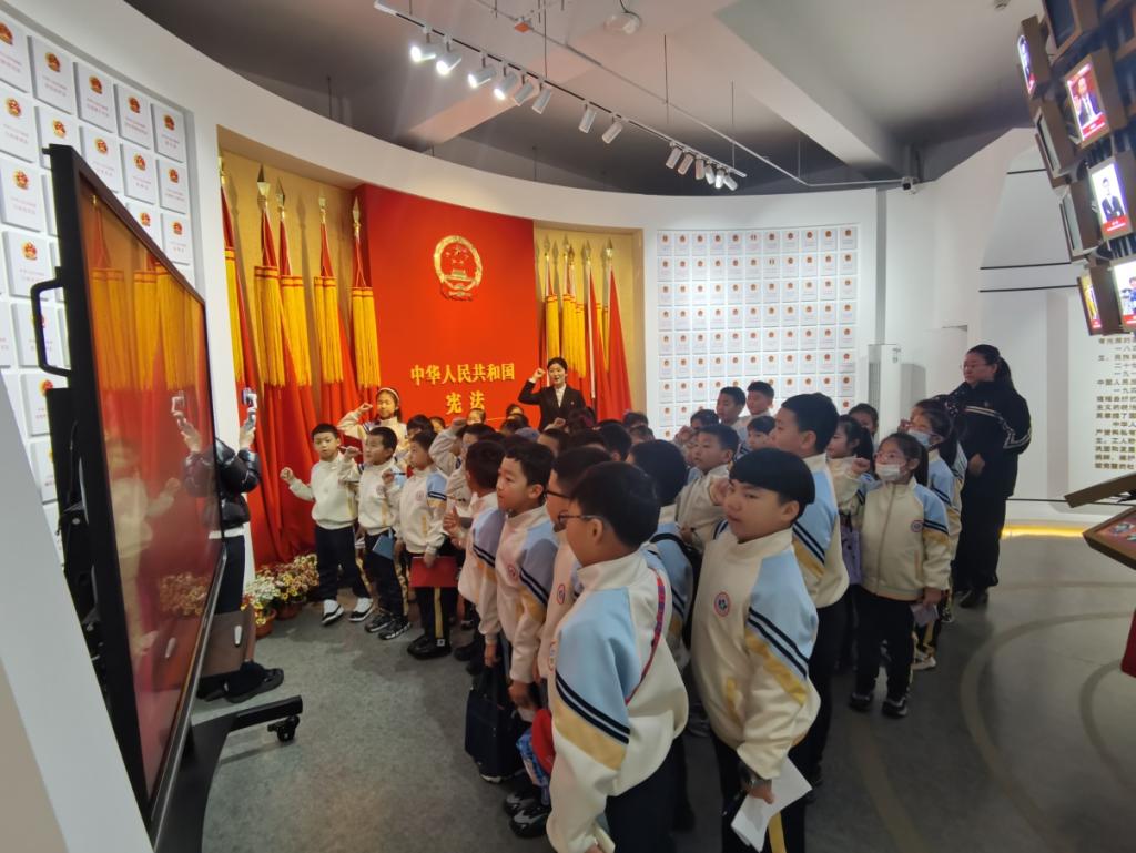 在实践基地宪法仪式厅,同学们身着整齐的校服,面向鲜艳的国旗,高举右拳,庄严宣誓:“忠于中华人民共和国宪法,维护宪法权威,履行法定职责……”铿锵有力的誓言在宣誓厅回荡。这一仪式不仅让同学们感受到宪法的神圣,更在幼小的心灵中播下了尊崇宪法、遵守法律的种子。“当我念出誓词时,突然觉得自己长大了,要做一个守法的公民。”一位参与宣誓的同学激动地说。