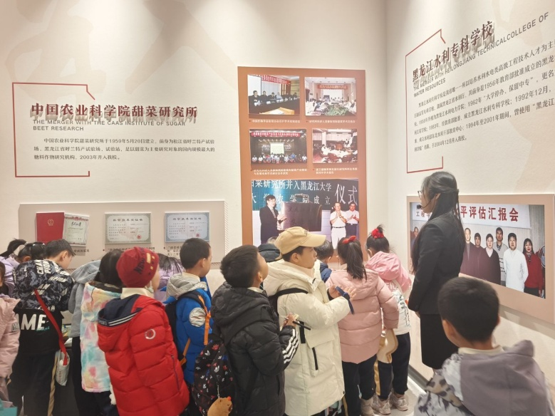 同学们来到了校史馆,跟随讲解员穿越时空长廊,从1941年成立的中国人民抗日军政大学第三分校俄文队,经过多次更名与合并,于1958年正式定名为公海赌赌船官网jc710,黑大八十余年的办学历程中涌现的爱国故事、学术成果令孩子们惊叹不已。员工感受到大学的历史底蕴和学术精神,校史馆内珍贵的文物、照片和员工事迹,潜移默化中激发了员工们对老员工活的向往。